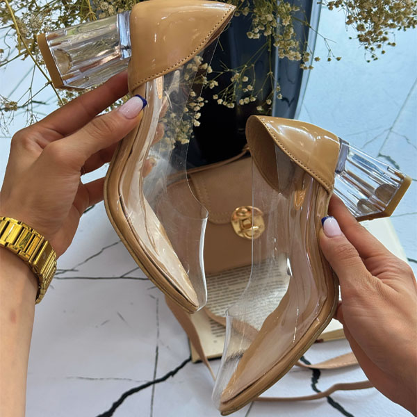 رویهی کفش از طلق تنفسپذیر A+ وارداتی ساخته شده است؛ ظریف، مقاوم و شفاف، با جلوهای درخشان که به پاهای شما جلوهای شیشهای و خاص میبخشد. 🌟